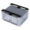 Diseñado sin nervaduras, el contenedor 512 perforado permite un aumento del 20 % de la ventilación sin dañar el producto. Fabricado en polietileno de alta densidad apto para uso alimentario, resistente a lavados a alta presión y a temperaturas de entre -20 ºC y +40 ºC, el palote liso 512 ha sido concebido para permitir el apilamiento de hasta 8 unidades.